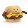 The star of any barbecue bash, Amuseables Burger's dressed to impress! From top to bottom, this burger's rocking a brilliant two-tone golden bun, cordy arms, a fluffy green gherkin, suedey yellow cheese and foldy lettuce! Oh yes, and the chunkiest fuzzy burger patty!